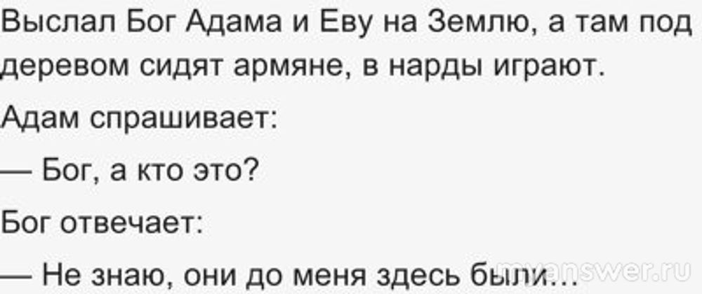 Так что, зная предысторию фразы о армянах и нардах, можно уже и не рассказывать анекдот полностью. Знатоки и по отрывку поймут.