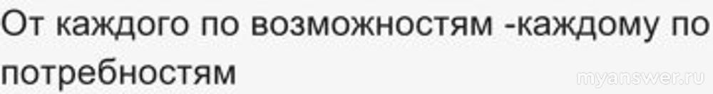 От каждого по способностям, каждому по потребностям.