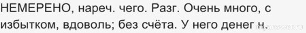 Пример предложения: "В Москву уже набилось из провинции народа — немеряно, а она не резиновая"
