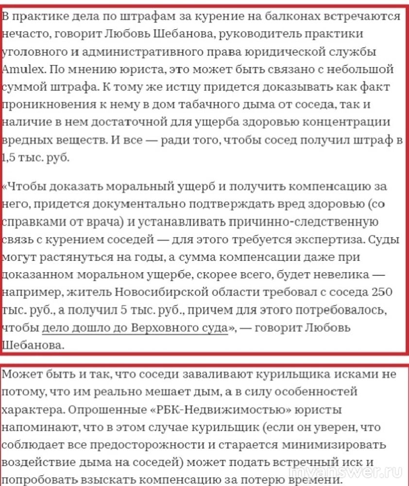 Даже если она и пойдет на принцип до последнего, то есть очень мизерный шанс слупить с меня не более пяти тыс. руб., и то в случае если умудриться меня сфоткать, когда я курю, высунувшись из окна- чего почти не бывает. В отличии от двух-трёх курящих соседей, но к ним вопросов у неё почему-то нет.
