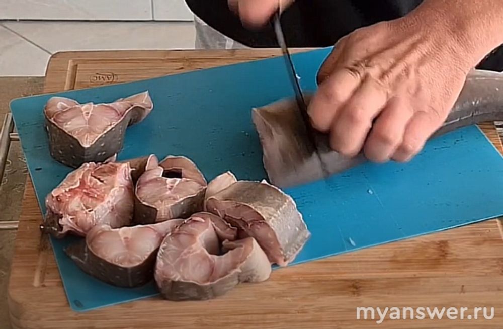 Затем надо отрезать голову, тонкий хвост и плавники - это отличные ингредиенты для супа.