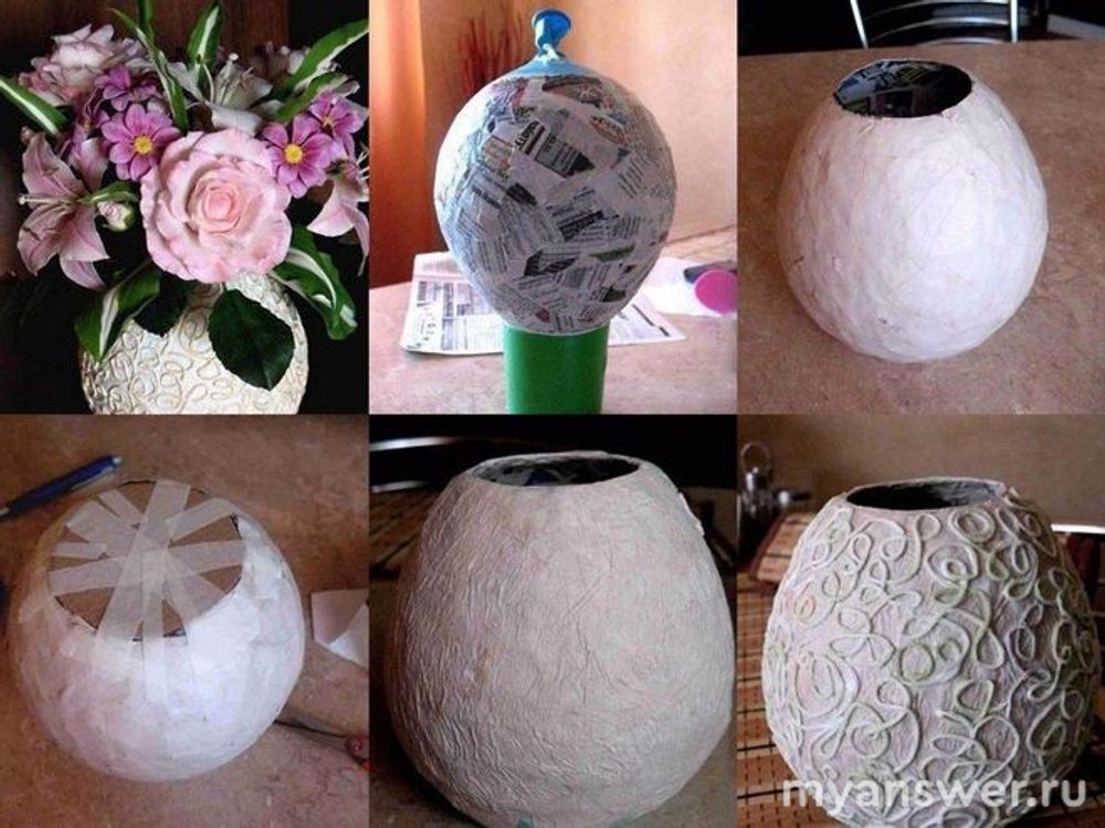 Это бумага и канцелярский клей. Кусочки бумаги, чаще газеты, клеятся на какой-то каркас. В несколько слоёв. После достижения необходимой толщины изделие сохнет. Потом его можно покрасить. В Изделие можно интегрировать различный декор. Например стекляшки, брошки, красивые веточки. Из обычного воздушного шарика можно сочинить красивую вазу. Безвреден, при соблюдении элементарных требований.