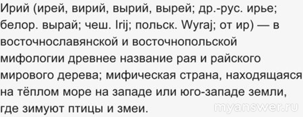 Еще это слово близкое к очень древнему славянскому слову Ирий.