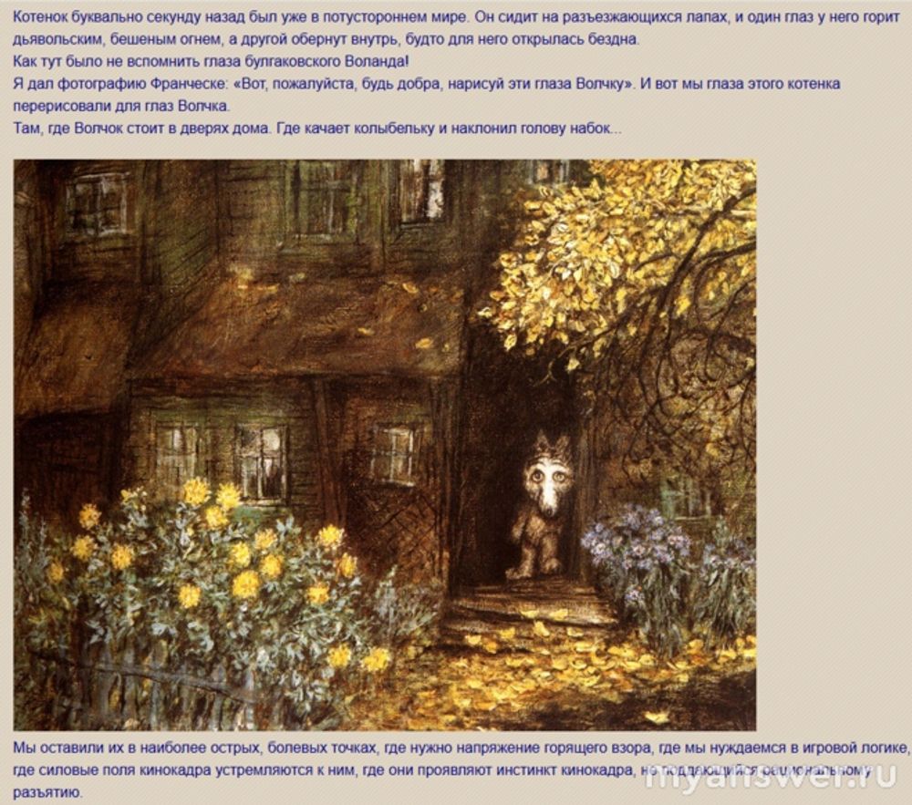 О глазах Волчка уместен особый рассказ, это тоже важно для погружения в сновидческое состояние: