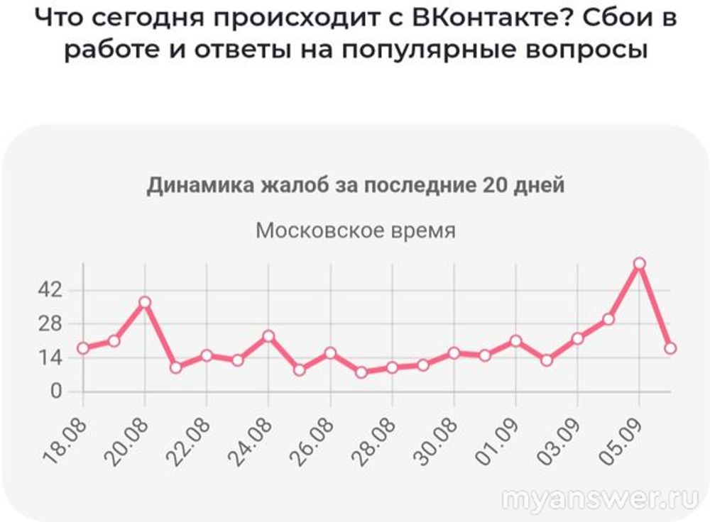 ВКонтакте имеет высокий уровень доверия среди населения, несмотря на свои сбои в работе. Как видим по графику, за три недели ни один день не был без жалоб.