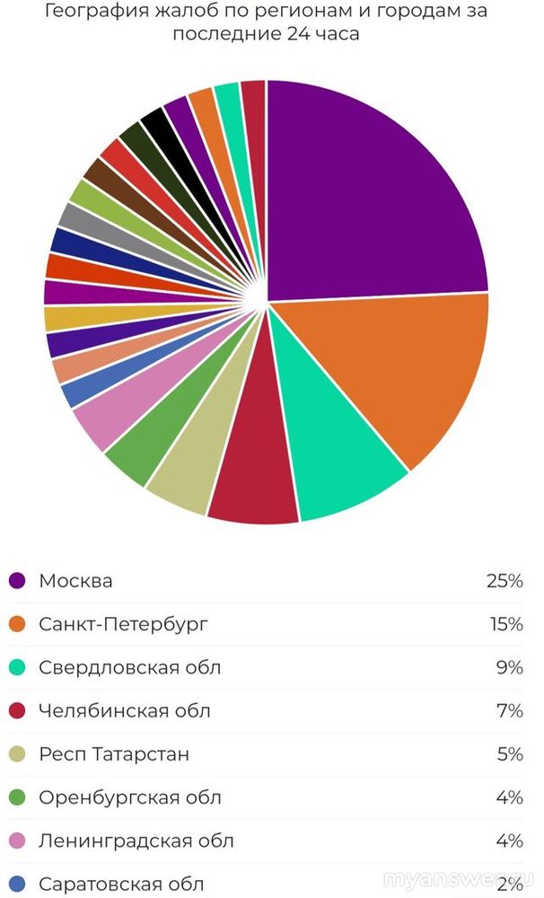 Половина всех жалоб за сутки поступила от Москвы, Санкт-Петербурга и Свердловской области.