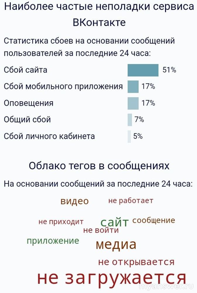 Сбои в работе ВК происходят достаточно часто. Что и раздражает пользователей. Конечно, кому приятно, когда срочно нужно, а тут "Бац!" и лбом в стену. На данный момент ВК тормозит только в некоторых регионах, это не масштабное отключение. Но, если у вас начались проблемы с работой ВК, лучше обратиться в техподдержку сайта и выяснить причину.