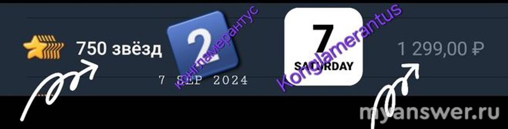 √ На снимке экрана номер два «2», изображена информация: ⭐ 750 звёзд и 1299 р. 00 к. Легко получаем стоимость одной звезды: 1299/750=1,732 р. Примерно можно округлить до 1 р. 73 к.