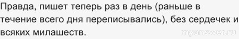 Правда, пишет теперь раз в день (раньше в течение всего дня переписывались), без сердечек и всяких милашеств.