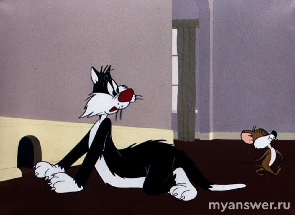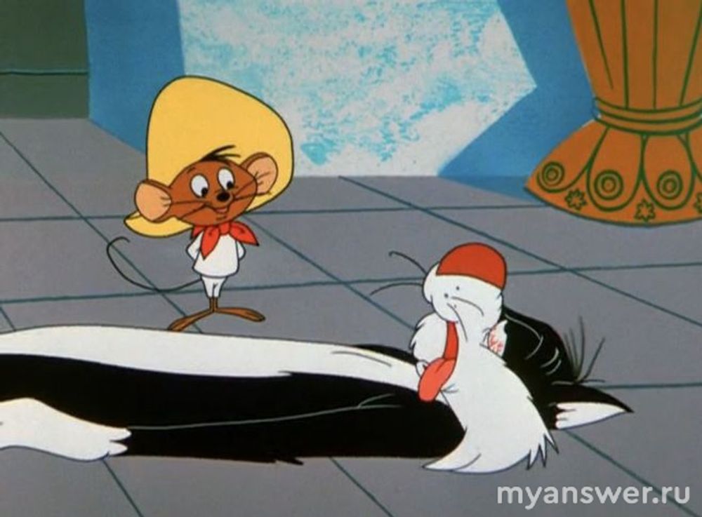 Возможно, вы имеете в виду один из мультипликационных фильмов про антропоморфных кота по имени Сильвестр и мышонка по имени Спиди Гонзалес из мультсериалов производства компании Ворнер Бразерс «Безумные Мелодии» и «Весёлые Мелодии», выходивших на экраны с тридцатых годов прошлого века.