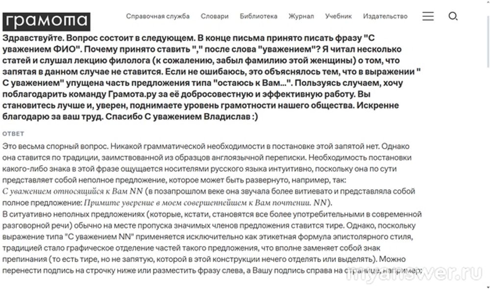 Как бы там ни было, но во фразе „С уважением Владислав“ имя Владислав — это практически ни в коем случае не обращение. Ладно, одно исключение всё же есть. В сказочной повести „Муфта, Полботинка и Моховая Борода" Муфта любил писать письма самому себе. Значит, в случае с Муфтой адресант и адресат совпали воедино, в одной личности. Мда, типичное раздвоение...