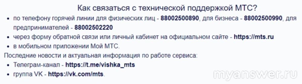 Так же пользователям стоит обратить своё внимание ниже на номера и адреса телефонов для связи с МТС технической поддержки, и при необходимости обращаться к операторам связи: