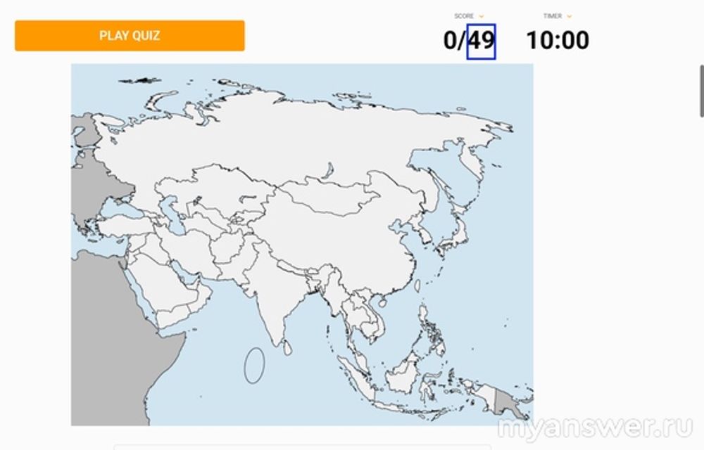 Всё же какой-то один чёткий ответ на данный вопрос дать можно. Я в продолжение четырёх лет участвовал в жизни сайта Sporcle. Споркл даёт чёткий и однозначный ответ на то, сколько и каких именно стран следует считать азиатскими. Таких стран насчитывается сорок девять штук. Я сделал скриншот: те страны, которые Споркл считает азиатскими, выделены на представленной карте белым цветом, а неазиатские, соответственно, — серым. Восточная половина острова Новая Гвинея согласно Спорклу лежит в Океании, а не в Азии. Египет согласно Спорклу азиатским государством не является. Россия и Турция являются как азиатскими, так, в равной мере, ещё и европейскими странами. Казахстан европейской страной Споркл не считает никогда (именно что его считают исключительно азиатским)! Кипр, наоборот, европейский. Тайвань считается отдельной суверенной азиатской страной.