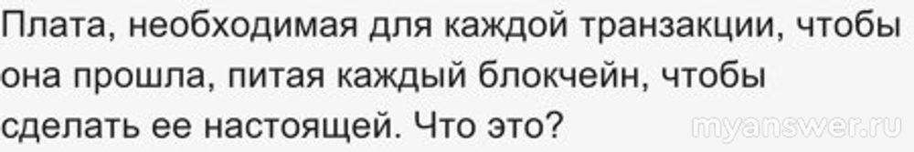 Плата, необходимая для каждой транзакции, чтобы она прошла, питая каждый блокчейн, чтобы сделать ее настоящей. Что это?