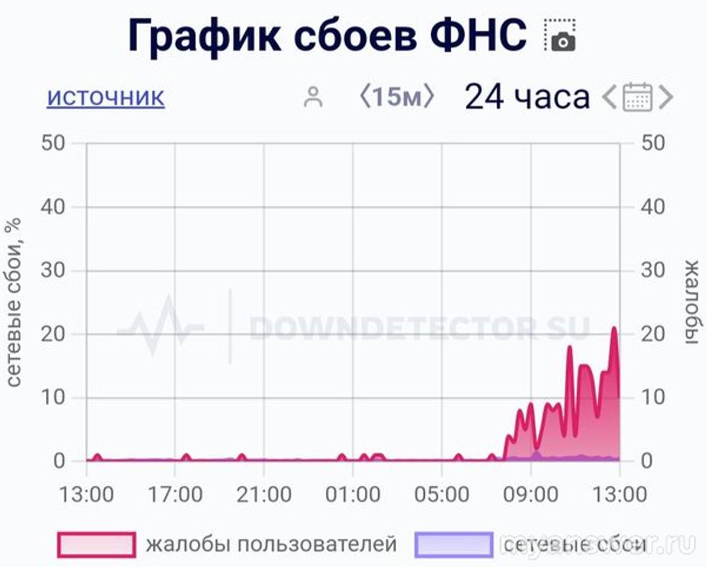 Проверочный сервис показывает на 13 часов дня по московскому времени текучий статус Налога ру как нерабочий.