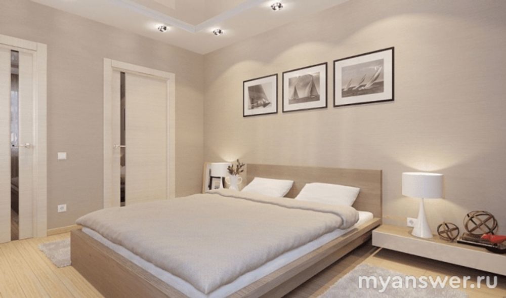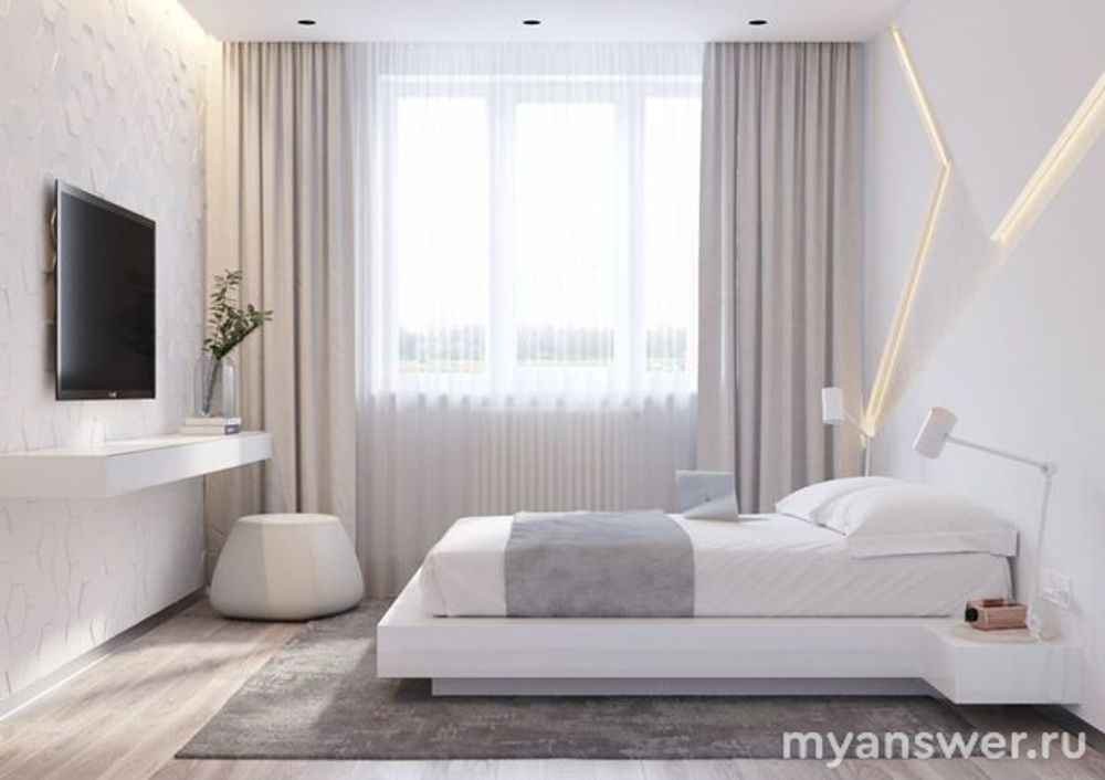 Будьте осторожны с белым цветом спальни, именно белоснежным. Он будет напоминать о больнице и смотреться неряшливо.