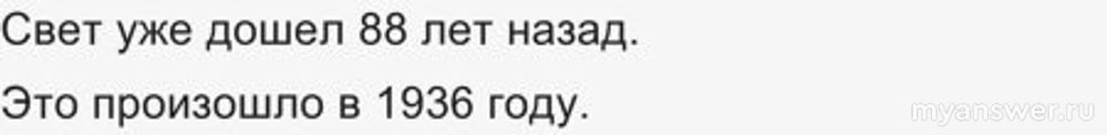Пишем ответы. 1-й вопрос: свет уже дошёл 88 лет назад (пункт № 3); 2-й вопрос: это случилось в 1936 году (пункт № 2).