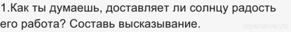 1.Как ты думаешь, доставляет ли солнцу радость его работа? Составь высказывание.