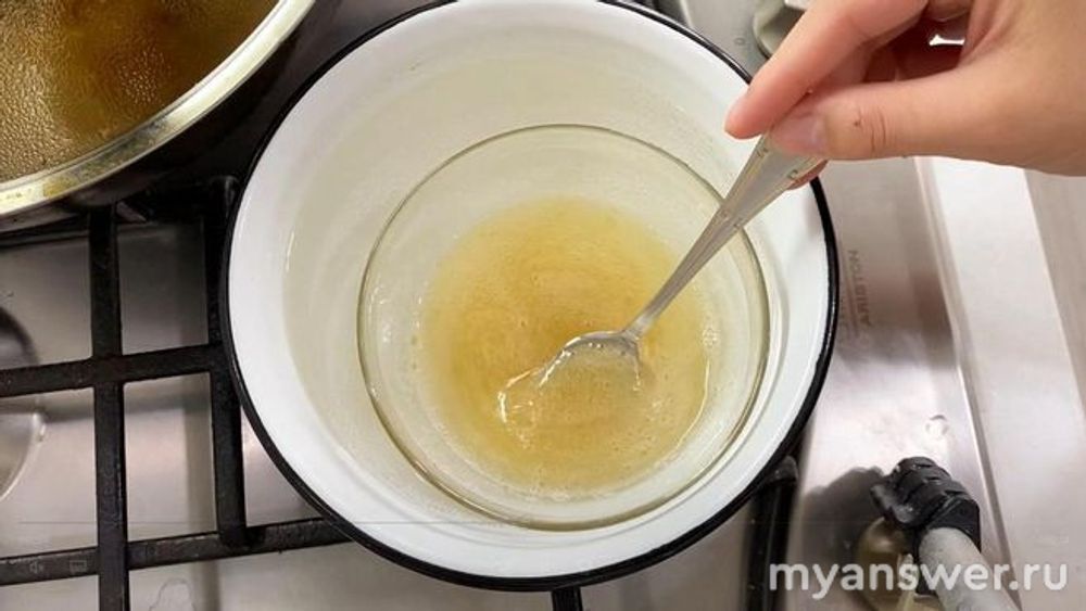 Для начала, установите емкость с водой на огонь и доведите ее до слабого кипения. Затем поместите в другую емкость (металлическую или стеклянную) набухший желатин и поставьте ее на водяную баню. Важно, чтобы дно емкости с желатином не касалось воды, иначе он может пригореть. Постоянно помешивайте желатин, пока он полностью не растворится и не станет прозрачным. Не допускайте кипения воды на водяной бане, так как это может разрушить структуру желатина и снизить его желирующие свойства.