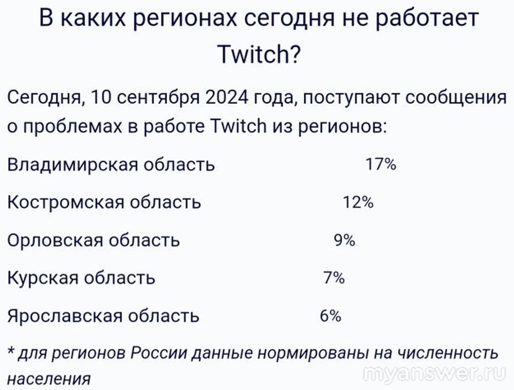 Вот и Твич оказался в их числе- перестал загружаться 10 сентября, в большинстве регионов.