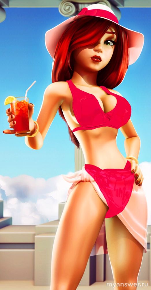Мультяшная Афродита в красном купальнике бикини (игра на android «Боги Олимпа»)