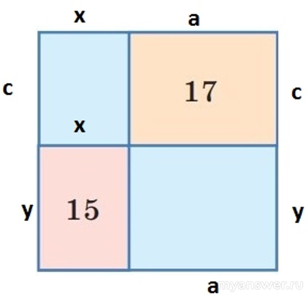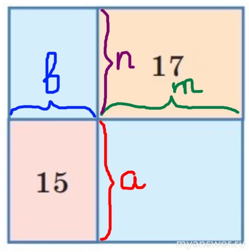 На картинке мы видим розовый прямоугольник и видим оранжевый (голубые нам неинтересны). Периметр первого по условию равен 15, а периметр второго равен 17.