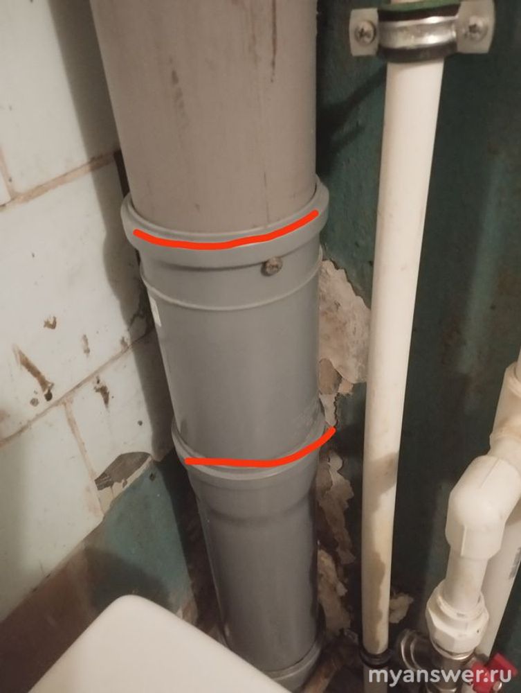 Но, гладко было на бумаге... Даже в трубопроводах такого большого диаметра случаются засоры. И вот тогда жидкость в стояке создает определенное давление, которое и вытесняет ее через микроскопические зазоры в соединении "в натяг". Не зря говоря, что вода дырочку найдёт.