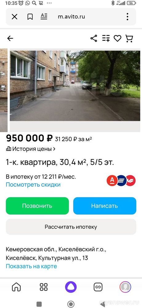 В некоторых небольших городах других регионов, где нет работы, нет современной инфраструктуры, тоже можно купить квартиры стоимостью до одного миллиона рублей. Например, в Кузбассе, где я проживаю. Вот только один наглядный пример: