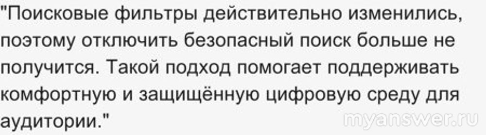 Да, теперь нельзя отключить безопасный поиск. Это произошло 13 сентября 2024 года. Ролики же остались Вконтакте, только найти их можно из поисковиков только, и этот поиск затруднен. Надо написать примерное содержание контента, который вы ищете, и добавить к нему ВК / Вконтакте.