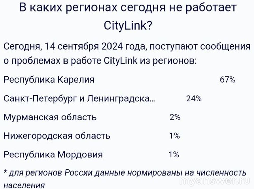 Не работает СитиЛинк (CityLink) 14.09.2024 года, почему, что делать?