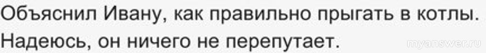 «Объяснил Ивану, как правильно прыгать в котлы. Надеюсь, он ничего не перепутает.»