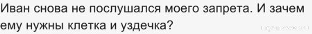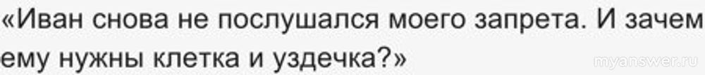 «Иван снова не послушался моего запрета. И зачем ему нужны клетка и уздечка?»