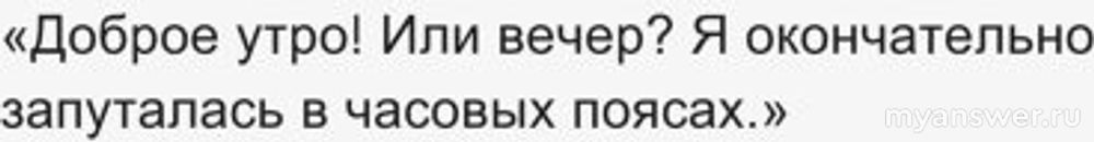 «Доброе утро! Или вечер? Я окончательно запуталась в часовых поясах.»