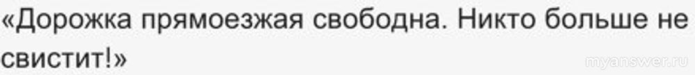 «Дорожка прямоезжая свободна. Никто больше не свистит!»