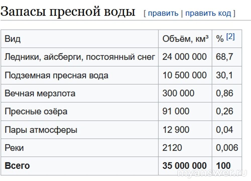 По которой видно, что основные запасы пресной воды в мире в целом сосредоточены в ледниках.