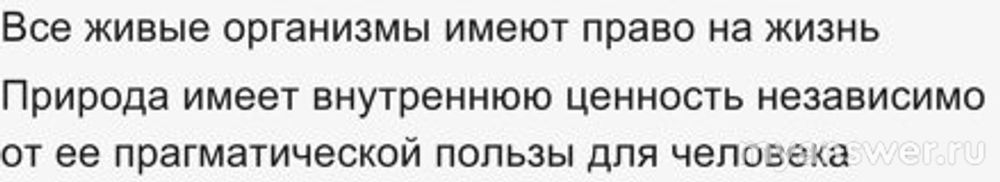 Какие из следующих утверждений является примером экоцентрического взгляда на отношения человека к природе?