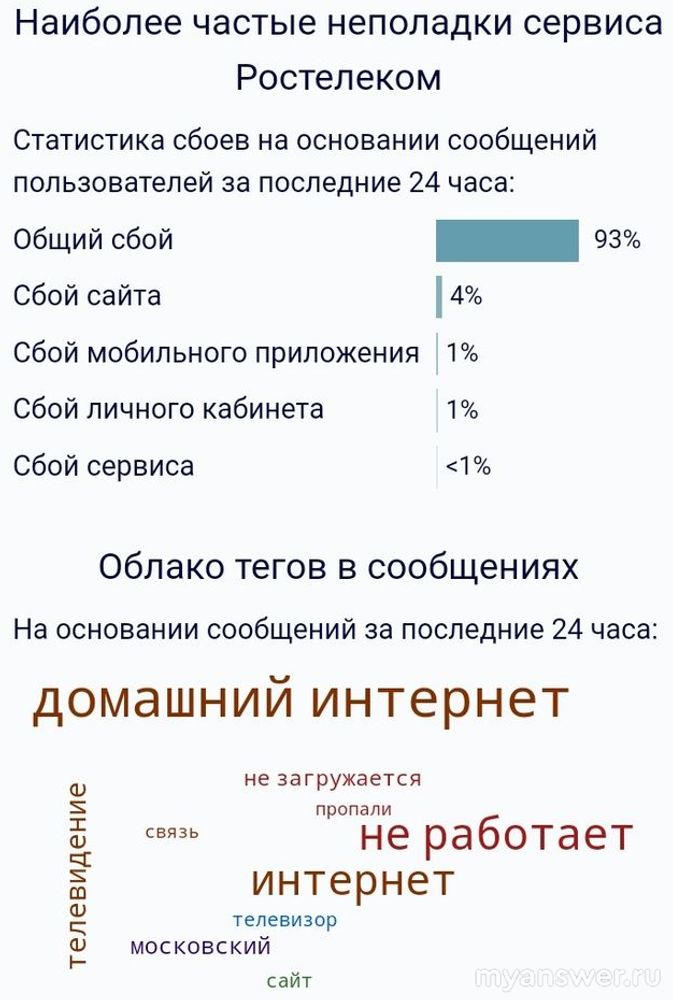 Сетевые по Ростелекому были скачки по сбоям, потом и жалобы пошли, в основном на то, что вообще не зайти в интернет, не работает Ростелеком или, что выбивает интернет Ростелеком постоянно. Сбои в основном сконцентрировались ткт, в этих местах:
