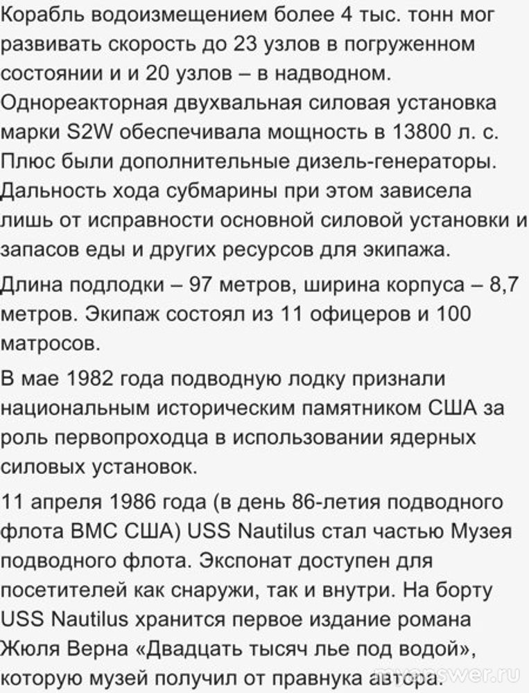 Осенью 1954 года произошло эпохальное событие в мире вооружений, но которое в силу специфики осталось засекреченным на десятки лет. На вооружение США поступила атомная субмарина, первая в истории подводного флота. Лодка имела бортовое название "SSN 571 "Nautilus". Это вопрос на который интересно отвечать, но к сожалению, есть ограничение формата Большого вопроса, это не литературный сайт.
