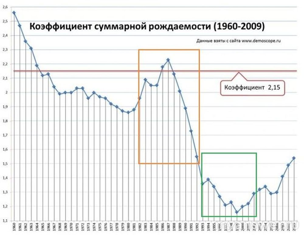 Но подъём рождаемости случился после того, как (примерно в 1987-88) совпали несколько факторов: