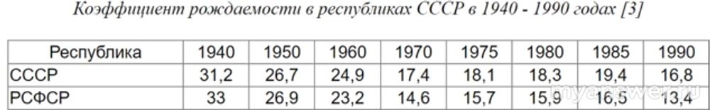 Как видите, в 80е годы рождаемость была вдвое ниже, чем до войны. Впрочем, в последующие годы она действительно стала ещё ниже (график оттуда же):