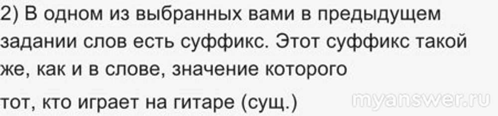 2) В одном из выбранных вами в предыдущем задании слов есть суффикс. Этот суффикс такой же, как и в слове, значение которого