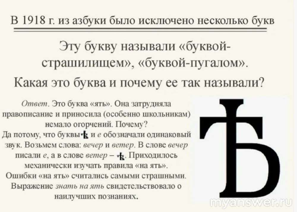 Что же случилось с буквой "ять", как она выглядела, почему решено было убрать ее из русского алфавита?