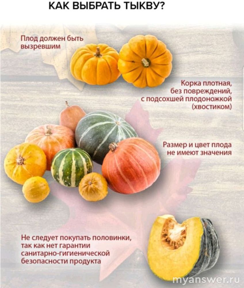 При покупки тыквы необходимо обращать внимание на следующее: