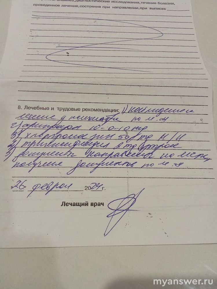 "1) Наблюдение и лечение у психиатра по м.ж. (месту жительства).
