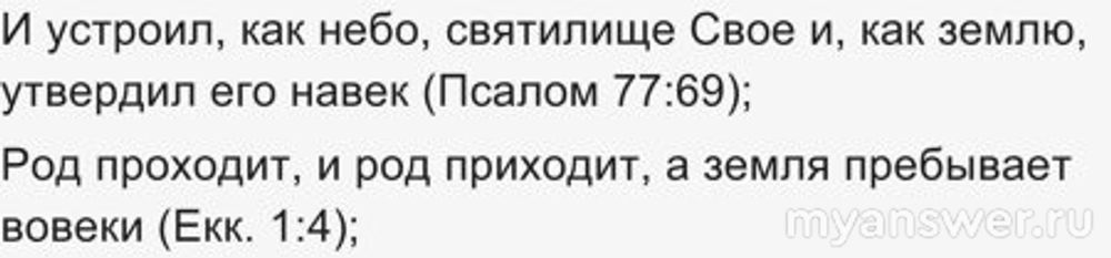 Например, в ней сказано, что праведные наследуют землю. Также в ней сказано, что она будет существовать вечно. А раз так то не стоит бояться, если вдруг будет третья мировая война или упадет комета. Также в писание сказано, что скоро Бог вмешается в дела людей и уничтожит злых в войне Армагедонне. И в этом нет сомнения.