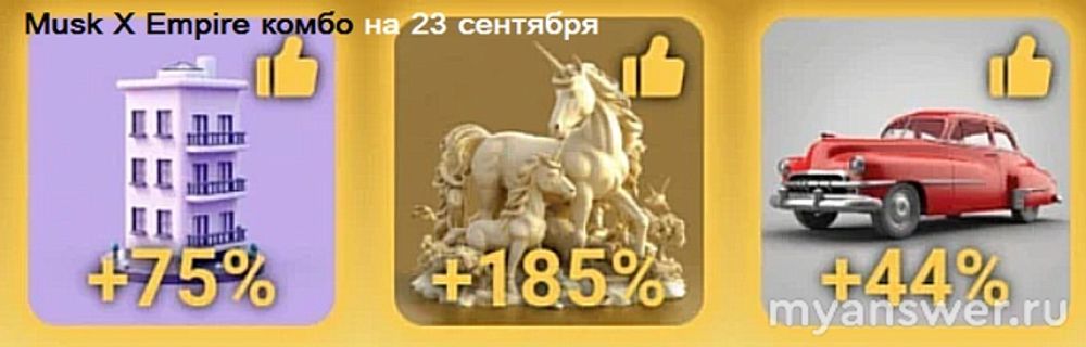 Можно, конечно, было бы и оставить и старый вопрос, про telegram-кликер Musk Empire, посвященному одному из самых уважаемых миллиардеров Илону Маску, и добавить три инвестфонда с высокой доходностью, которые меняются ежедневно (на 23-24 сентября комбо смотрим ниже