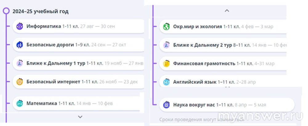 ), тем более что вопрос сразу проидексировался в поисковиках. Но ведь намного полезнее задать долгоиграющий вопрос и дать на него действительно полезный качественный ответ. Поэтому, всем коллегам предлагаю посмотреть расписание олимпиад на учи ру на предстоящий год. Можно на него подписаться и узнавать о начале олимпиад из уведомлений, но проще распечатать и держать перед глазами, чтобы давать задания детям раньше.Платформа uchi.ru предполагает не только ежедневное выполнение заданий по школьным предметам, например математика, русский язык, окружающий мир и тому подобное. А также на платформе uchi.ru ежегодно проходит огромное количество интересных, а порой немного сложных олимпиадных заданий. Рассмотрим, какие предстоят Олимпиады на uchi.ru на 2024 по 2025 год. Перечислим олимпиады, те которые проходят в данный момент и которые предстоят.
