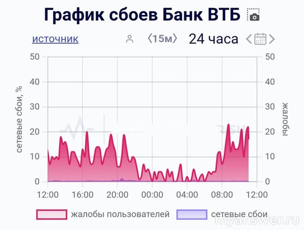 Начиная с семи часов утра 25 сентября 2024 года начали нарастать жалобы на работу сайта и мобильного приложения банка ВТБ.