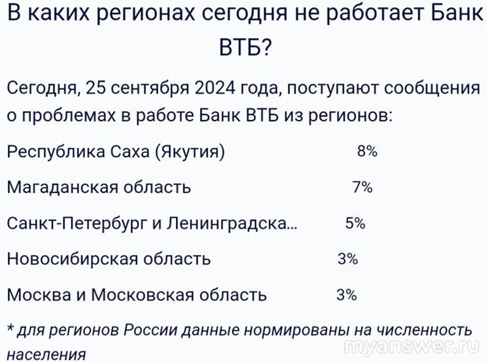 Не работает ВТБ (сайт, приложение, личный кабинет) 25 сентября 2024, почему, что делать?