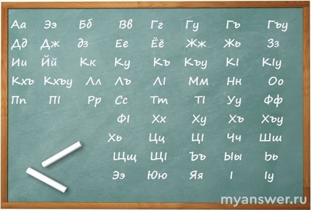 Какое количество букв в кабардинском алфавите? Сколько гласных букв в кабардинском алфавите? Сколько согласных букв в кабардинском языке?
